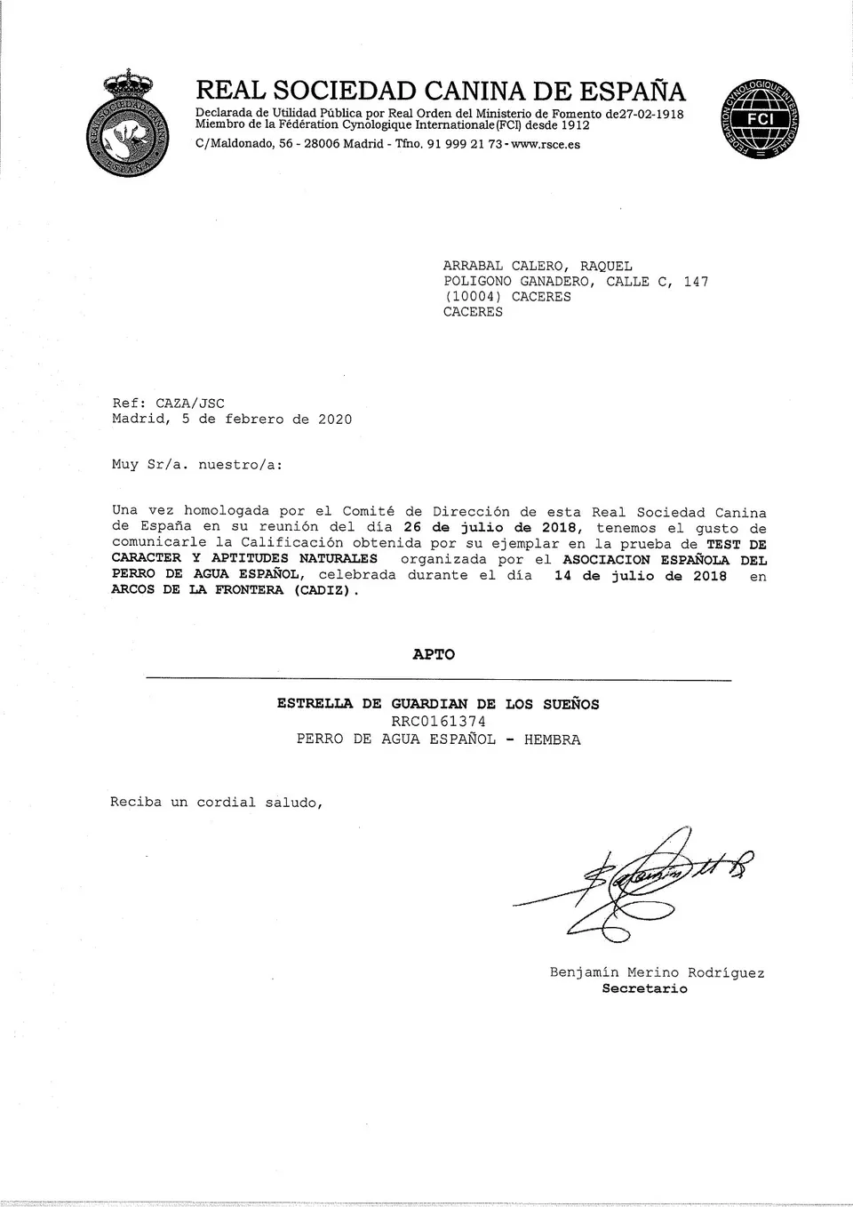 Más allá de sus excepcionales características físicas y su impecable linaje genético, Estrella se distingue por su excelente carácter. Es una perrita amigable y sociable, cualidades que la convierten en una compañera excepcional para su familia. Su naturaleza afable y su capacidad para interactuar positivamente con personas y otros animales la hacen muy querida por todos aquellos que la conocen.